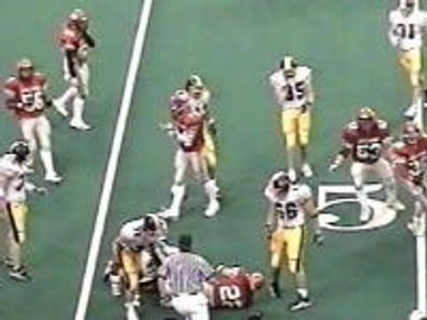 Despite winning the 4A state championship in 1991, Bettendorf didn't rank among the top three teams in their conference due to early losses to Burlington and Clinton. A three-way tie in the M.A.C. standings placed them fourth overall, but their win over M.A.C. champion Assumption secured their playoff spot. Led by offensive linemen Keith Lucier and Eric Lyons, tailback Tavian Banks powered their offense, while Pat Bateman and Jed Orgill anchored the defense. After a 31-15 first-round win over Assumption, Bettendorf avenged their opening loss by routing Burlington 55-17 in the Quarterfinals and cruised past Dubuque Wahlert 41-9 in the Semifinals. In the 4A title game, they faced Sioux City Heelan, a seasoned finalist with a tough defense led by lineman Jon LaFleur and standout rusher Nick Harrington. Ultimately, one pivotal play decided the championship.
